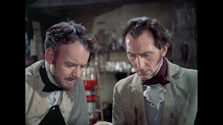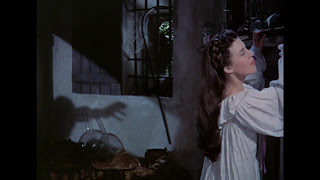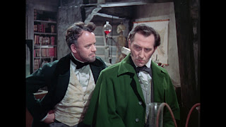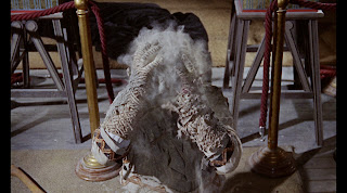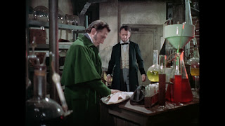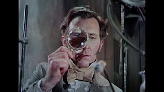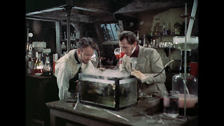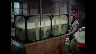 Cusick created the first ever glass shot for the series to extend the ground floor of the house and the production used front projection techniques to show the TARDIS crew interacting with Farrow's body, a rack of test tubes and a telephone. He allegedly also came up with the idea of using the gas-jet to attack Forester. It's worth noting that these over sized props, sets and effects were achieved on a shoestring budget well before Irwin Allen threw a ton of cash (a reported $250,000 per episode) at his Land of the Giants television series when it started shooting in Autumn of 1967.